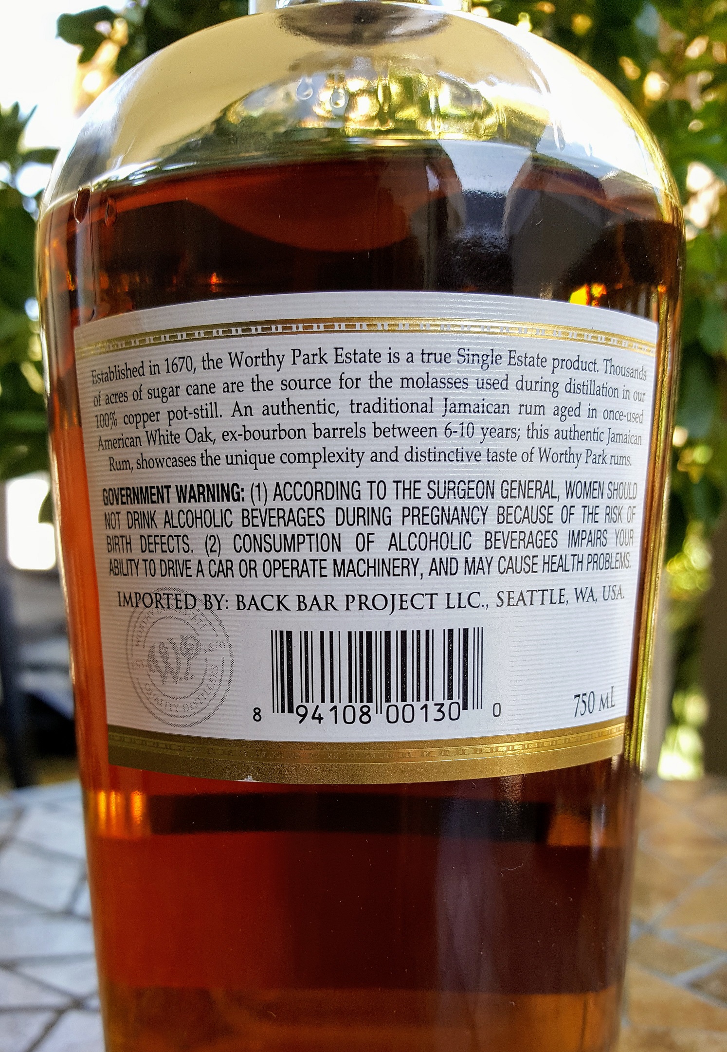 Yet even among these, perhaps one or two dozen producers out of many hundreds available available in the U.S. there is a huge range of effects and it is good to keep reminding yourself of how much different two rums can be. I found this recently no better illustrated than the difference between the Foursquare PREMISE I reviewed last time and this Worth Park. The PREMISE smacks of sweetness and fresh fruit, although no sugar is added to it. It is aged for 10 years both in ex-bourbon and ex-dry-sherry casks, and comes to us at 46% ABV. The Worthy Park is dry with notes of over-ripe fruit, aged 6-10 years (according to the label) in “once used” ex-bourbon casks, bottled at 45%. But their aromas and flavors could not be more different. I’m guessing, but I suspect the casks are not charred and come from a non-smokey sort of bourbon. There are no charred oak flavors.