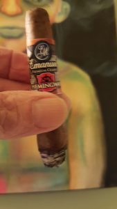 The flavors dial in and out with every puff, but all of them have something to recommend. The cigar starts out pretty mild in strength and gets maybe to a medium when finished. This is a great cigar and remained flavorful down to the last half inch; “A+”. I paired all three of the cigars so far with coffee recommended by most of the reviewers. A really good morning cigar.